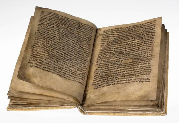 le parchemin, étymologiquement la matière de Pergame, est un ersatz (succédané, = produit de substitution) du papyrus, dont le royaume d’Egypte avait imposé le blocus après la mort d’Alexandre, suite aux dissensions que les querelles de succession avaient suscitées entre les différentes parties de son empire. A base de peau (par ex. de jeune veau, d’où le velin), il se conservait mieux que le papyrus, se prêtait mieux à une écriture recto-verso et à la pliure, donc à la reliure (avec un système de numérotation des cahiers successifs à relier, et de réclame entre deux cahiers pour confirmer leur classement); ceci a permis la création du livre tel que nous le connaissons actuellement : le CODEX (un objet très moderne d’après cette vidéo de you tube ! marquée au sceau de l’humour). La compulsation des données en a été grandement facilitée ainsi que leur conservation : « je me souviens de l’essentiel » – et surtout des Evangiles ! -, mais leur multiplication est limitée : le parchemin est rare, donc cher. Ce problème est résolu par |